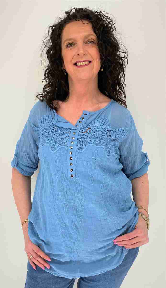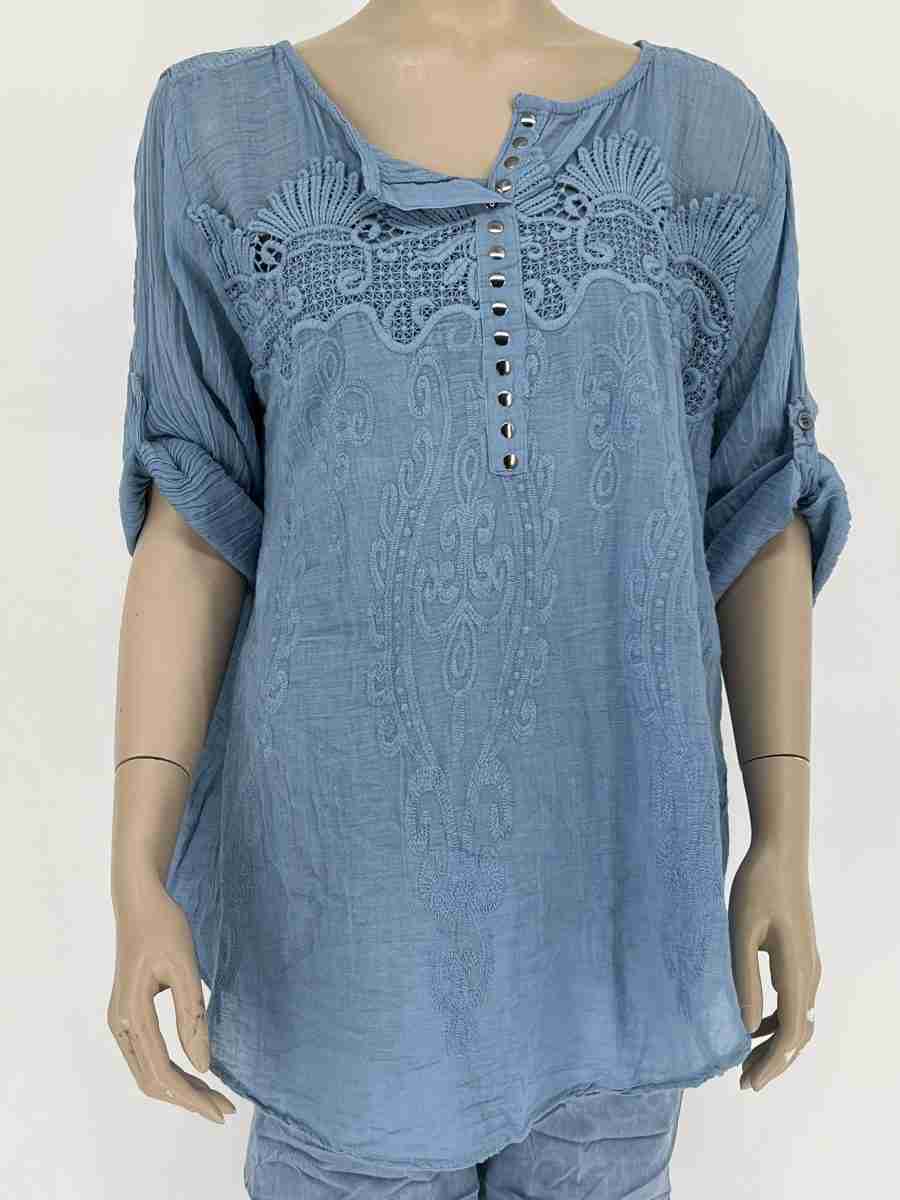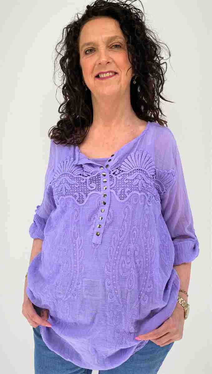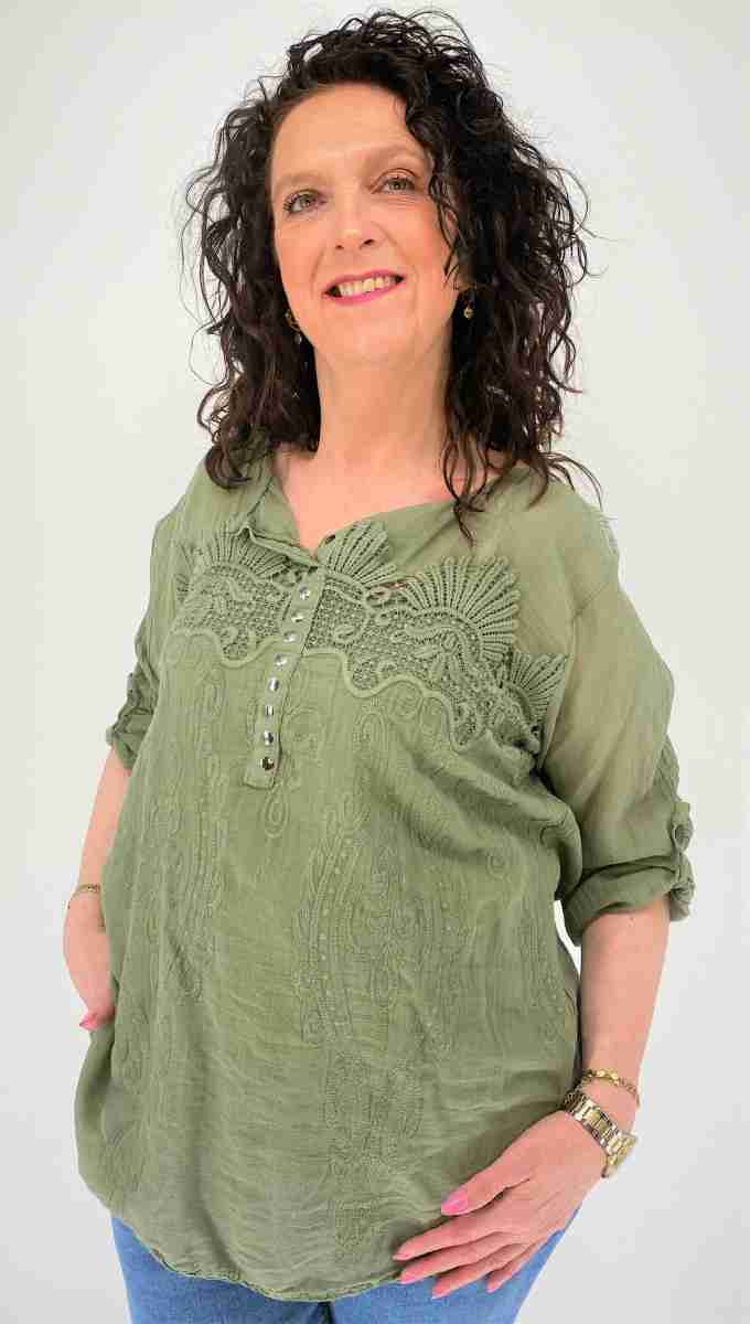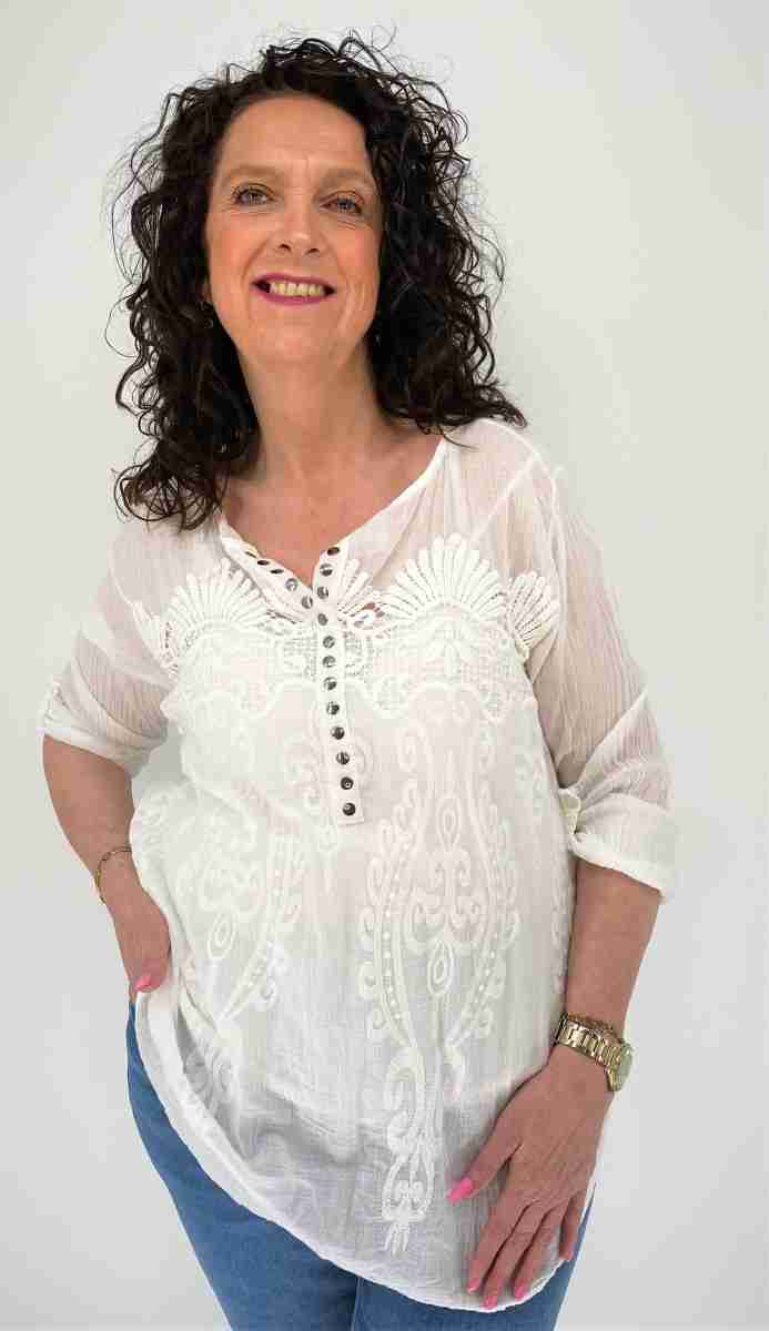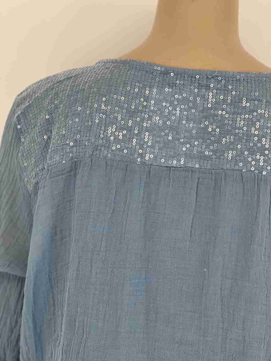 De borduursel aan de voorzijde en paillette op je rug/schouders maken deze top een uniek soort top