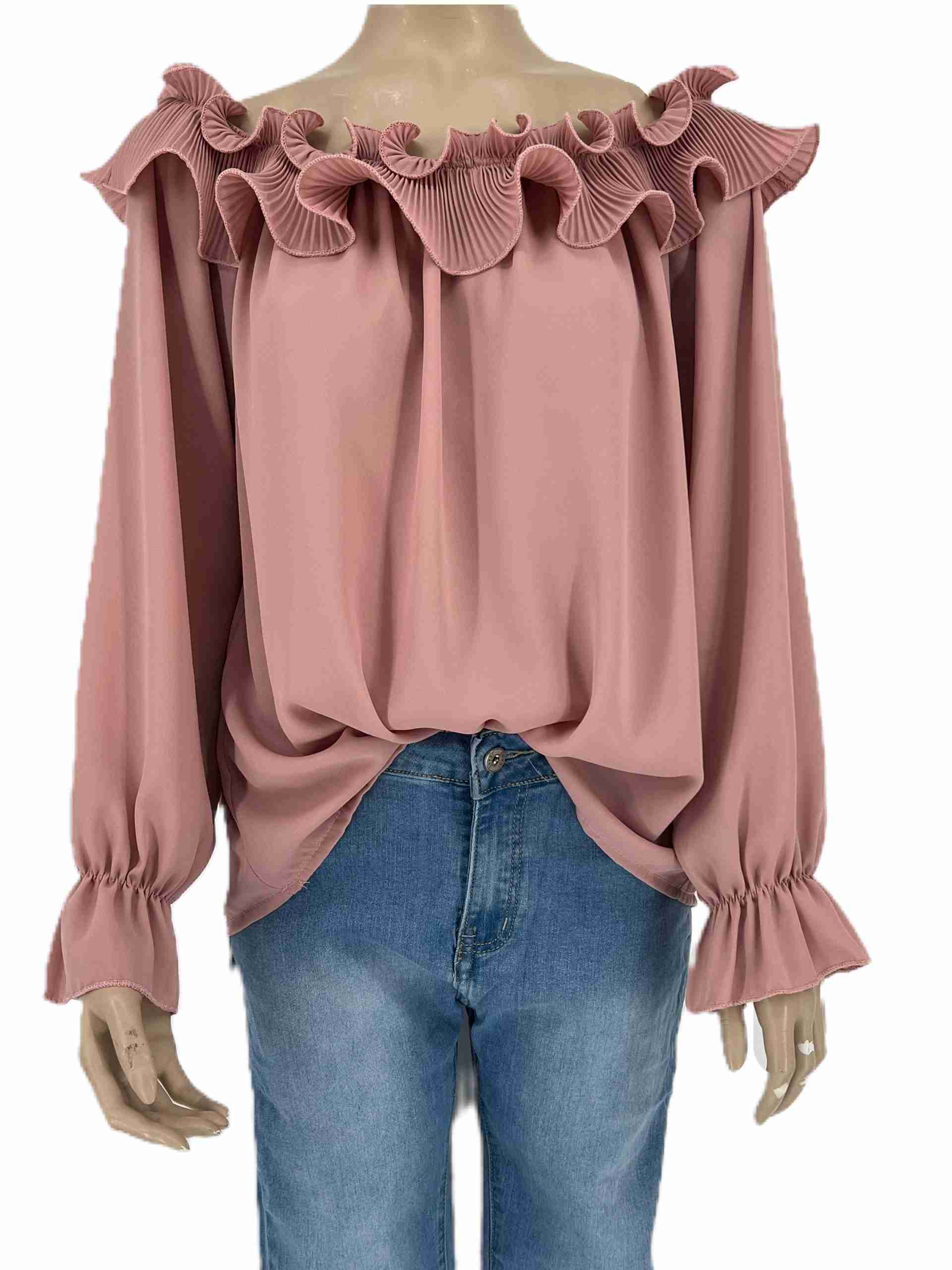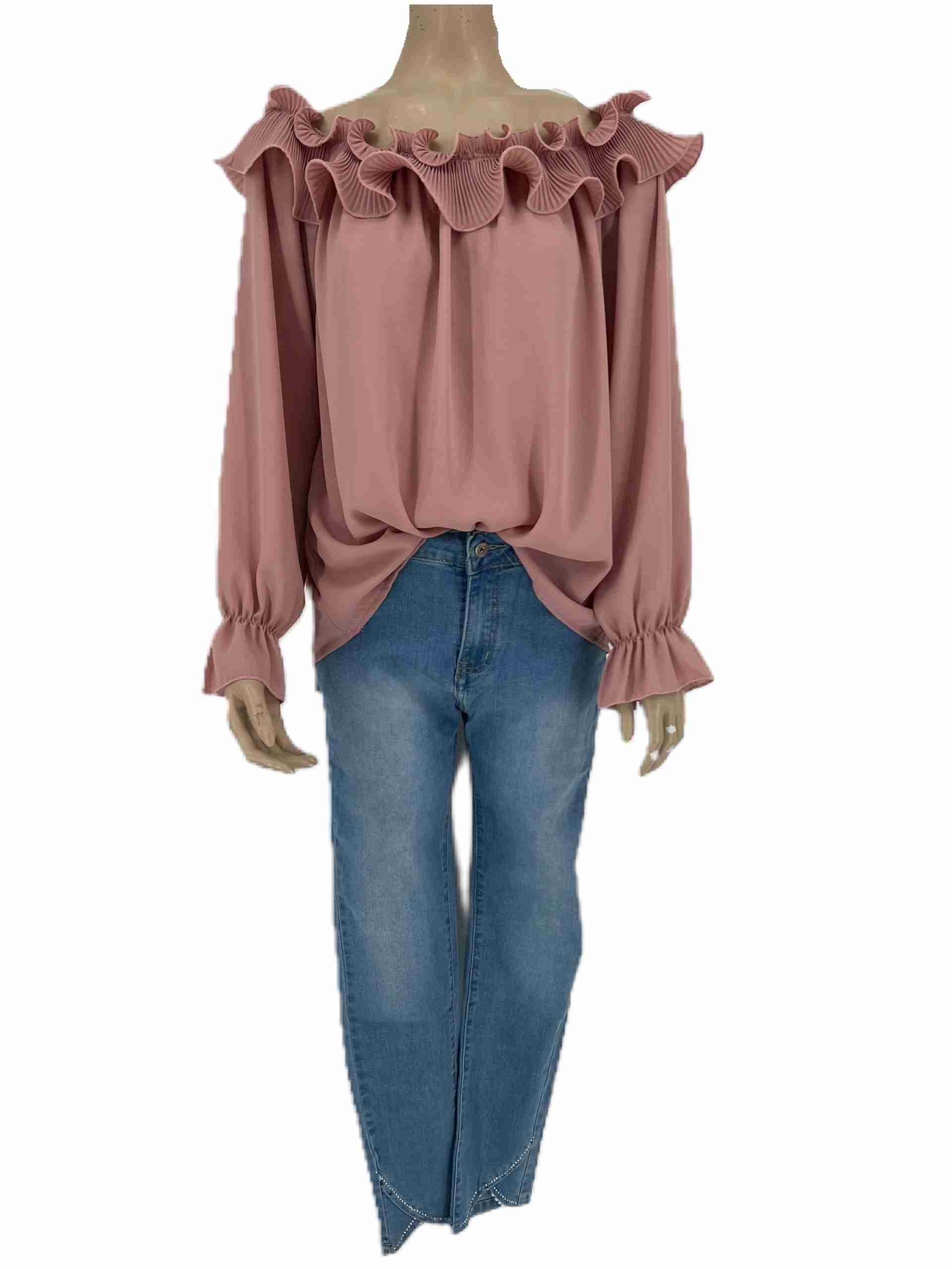 De TESSA top is mooi vallende top met mooie ruffel hals